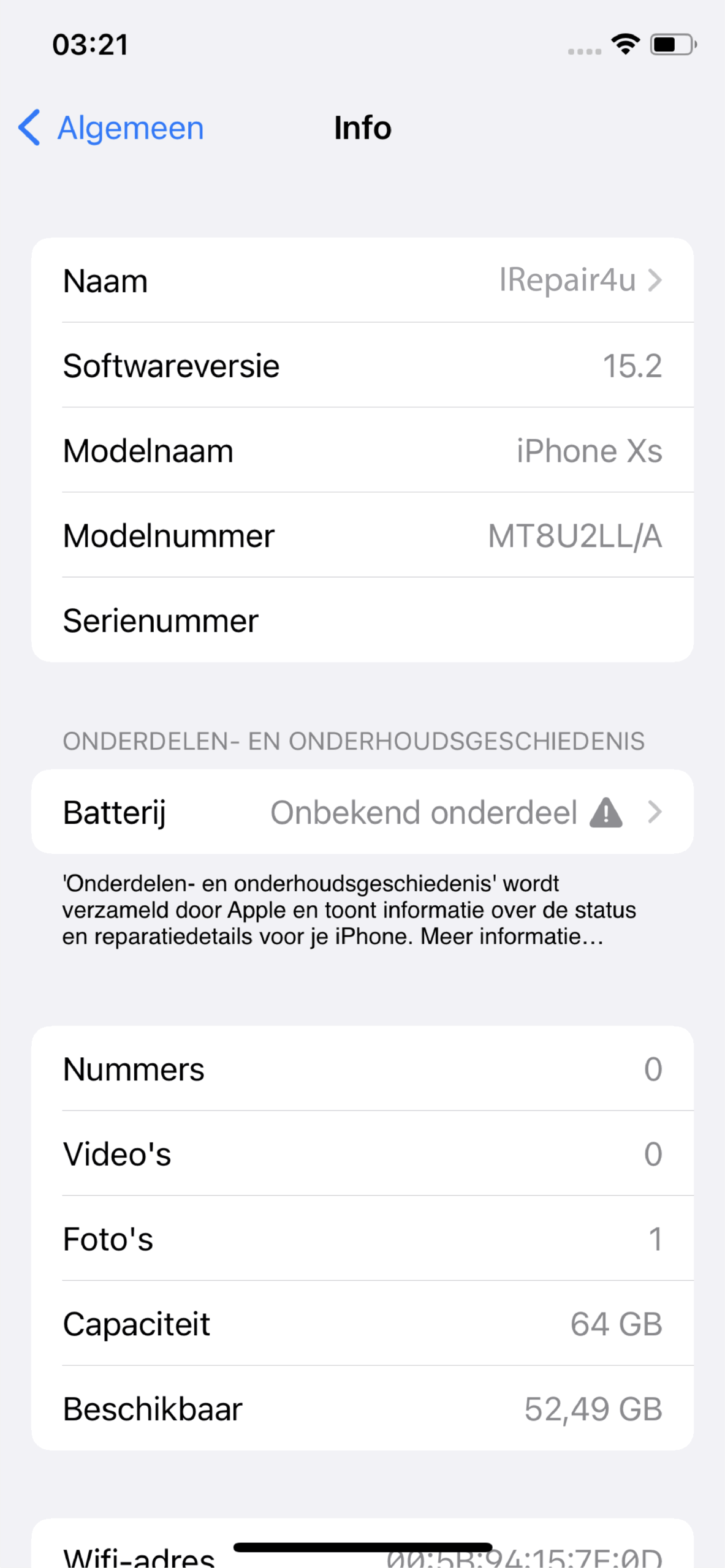 Je kent het misschien wel: je iPhone geeft een melding als je een niet-gecertificeerd onderdeel aansluit, zoals een oplaadkabel of oortjes. Apple heeft in iOS 15.2 een soortgelijke functie ingebouwd, maar dan voor interne onderdelen zoals de batterij en de camera. Je kunt dan zien of er bij een reparatie (of wanneer je een refurbished toestel hebt) gebruik is gemaakt van officiële onderdelen (Genuine Apple Part) of niet (Unknown Part). Je kunt je telefoon hoe dan ook blijven gebruiken; dat was in het verleden niet altijd het geval.
